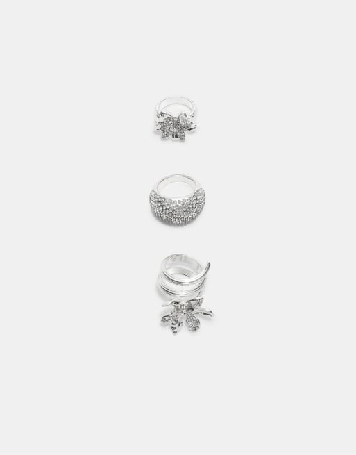 Stradivarius - Lot de 3 bagues à strass - Gris