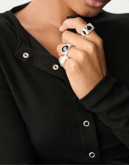 Stradivarius - Lot de 3 bagues combinées - Gris