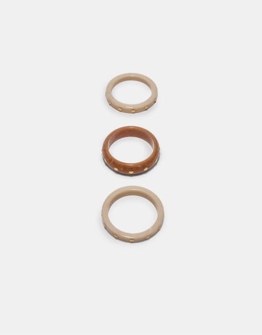 Stradivarius - Lot de 3 bracelets rigides cloutés - Marron