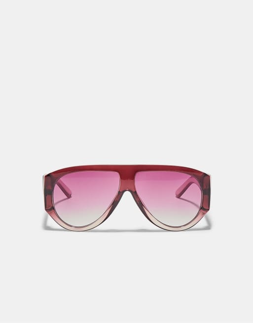 Stradivarius - Lunettes de soleil ovales en résine - Bordeaux