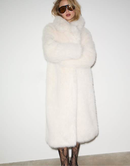 Stradivarius - Manteau long pelucheux en fausse fourrure - Écru