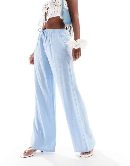 Stradivarius - Pantalon à enfiler en aspect lin effet froissé - Bleu