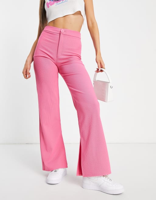 Stradivarius - Pantalon ajusté à ourlet fendu - Rose