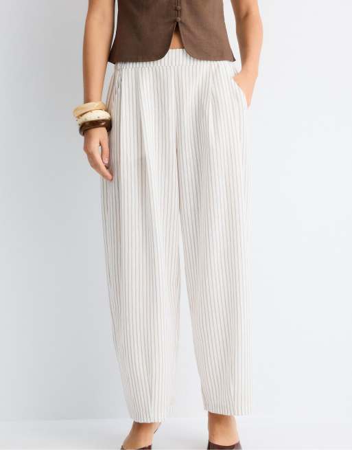 Stradivarius - Pantalon bouffant fluide à rayures - Taupe