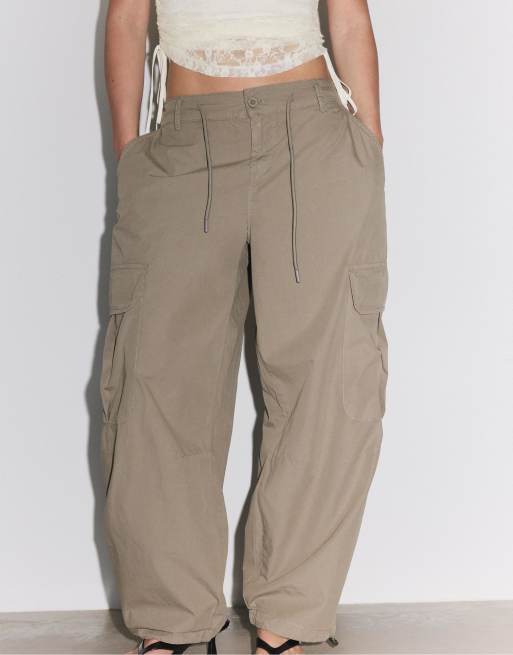 Stradivarius - Pantalon cargo en popeline - Kaki
