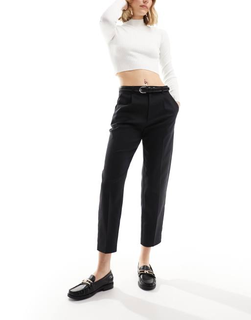 Stradivarius - Pantalon court habillé à pinces - Noir