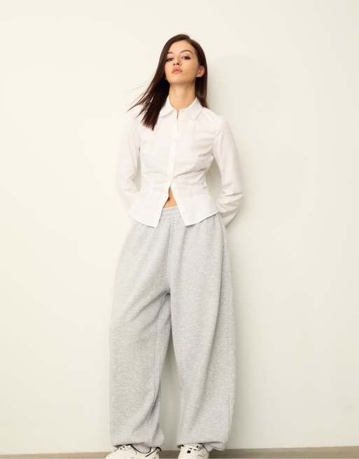 Stradivarius - Pantalon de jogging coupe bouffante - Gris chiné