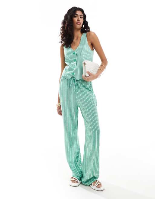 Stradivarius - Pantalon d'ensemble à enfiler aspect lin à rayures - vert