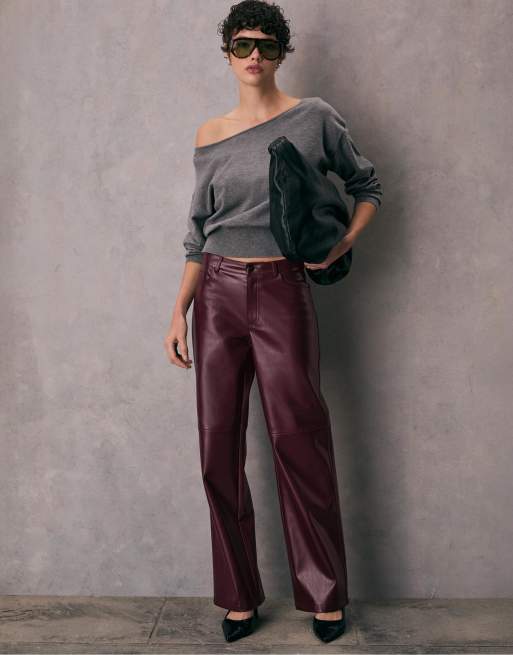 Stradivarius - Pantalon droit en similicuir texturé - Violet