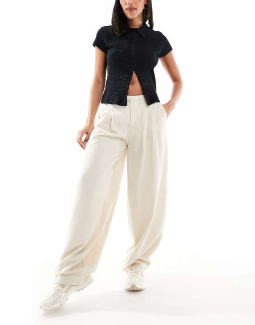 Stradivarius - Pantalon habillé coupe ballon - Écru