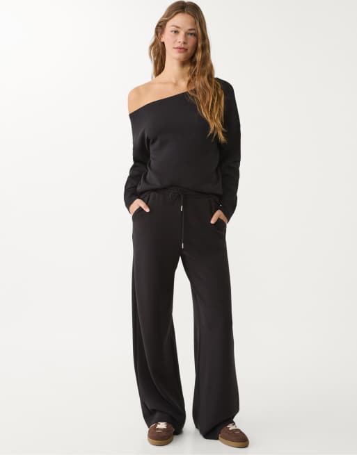 Stradivarius - Pantalon palazzo doux au toucher - Noir