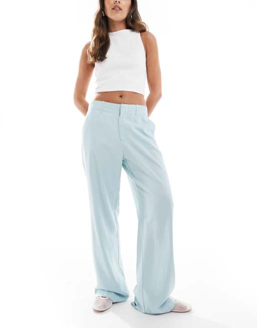 Stradivarius - Pantalon taille basse habillé en aspect lin - Bleu pâle
