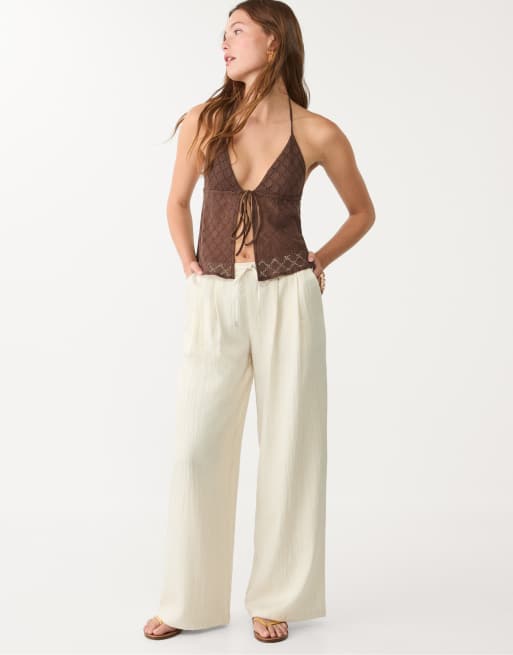 Stradivarius - Pantalon texturé à cordon de serrage - Vanille