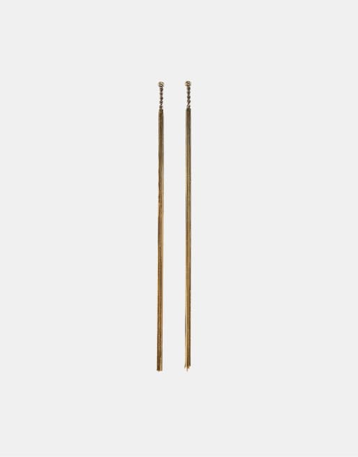 Stradivarius - Pendants d'oreilles ultra longs à strass - Doré
