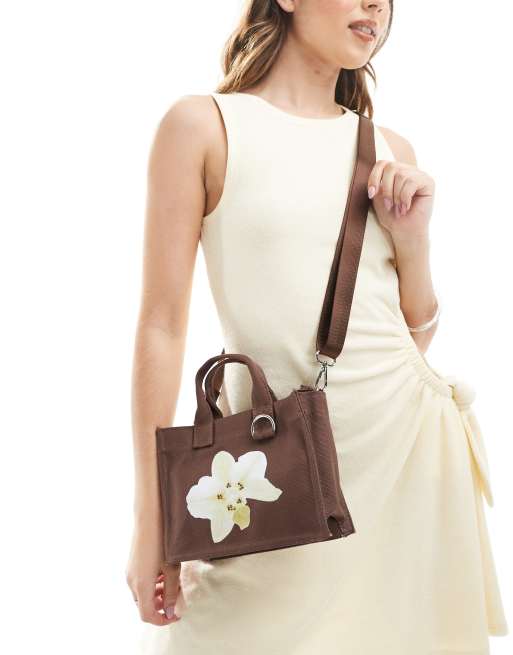 Stradivarius - Petit sac en toile avec détail fleur - Marron