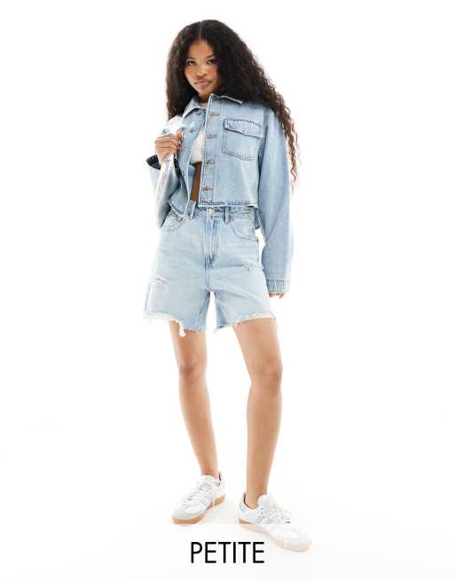 Stradivarius Petite - Short dad en jean avec déchirures - Bleu clair