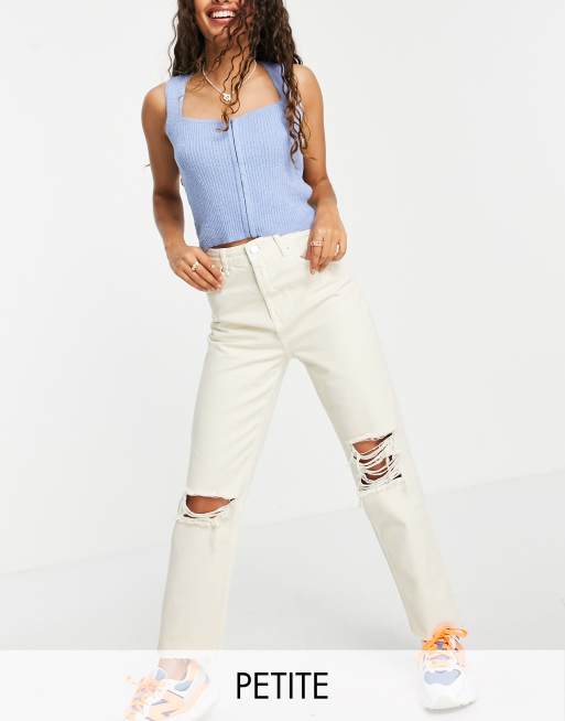 Stradivarius Petite - Short mom déchiré - Écru