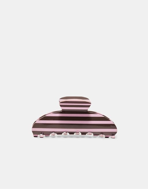 Stradivarius - Pince à cheveux à rayures - Rose pastel