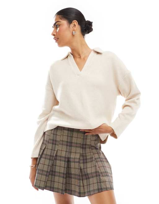 Stradivarius - Polo à col V - Gris