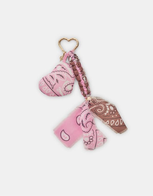 Stradivarius - Porte-clés avec pendentif cœur à imprimé bandana - Rose pastel