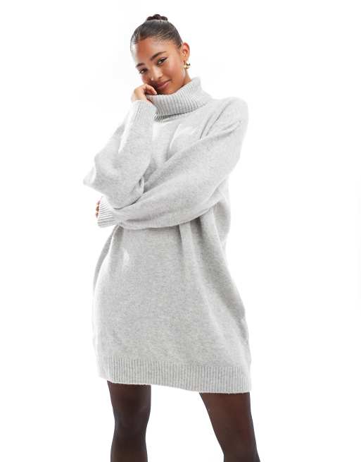 Stradivarius - Robe col roulé courte en maille - Gris