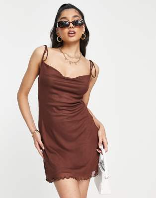 Stradivarius - Robe courte en tulle - Chocolat