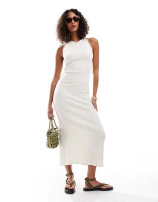 Stradivarius - Robe mi-longue dos nu - Blanc