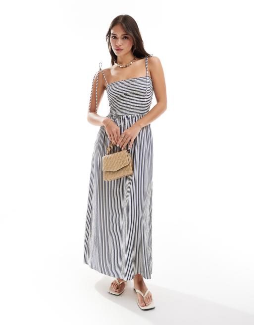 Stradivarius - Robe mi-longue en crêpe rayé