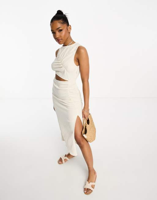 Stradivarius - Robe mi-longue froncée à découpe - Écru