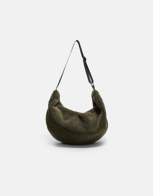 Stradivarius - Sac bandoulière en imitation peau de mouton - Kaki