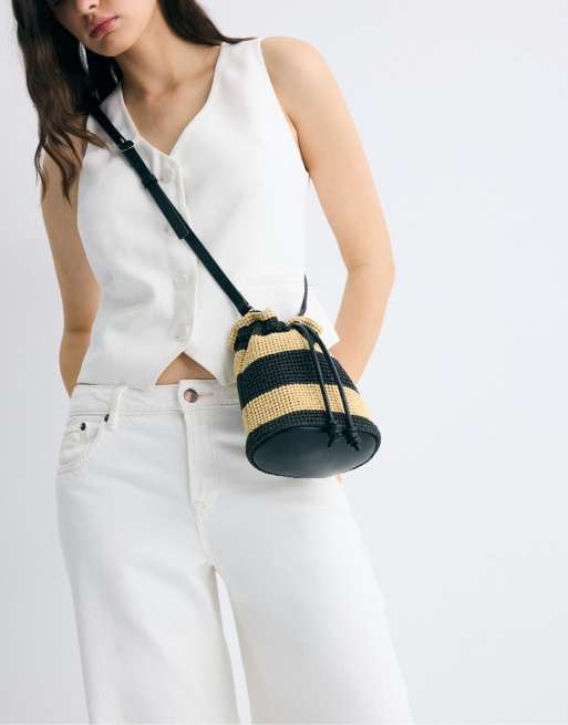 Stradivarius - Sac bandoulière en maille crochetée contrastante - Écru