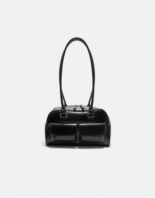 Stradivarius - Sac porté épaule à poches et longue bandoulière - Noir