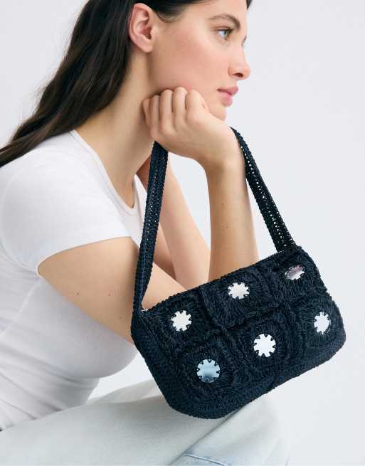 Stradivarius - Sac porté épaule en maille crochetée avec miroirs - Bleu marine