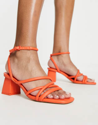 Stradivarius - Sandales à brides et talon carré - Orange