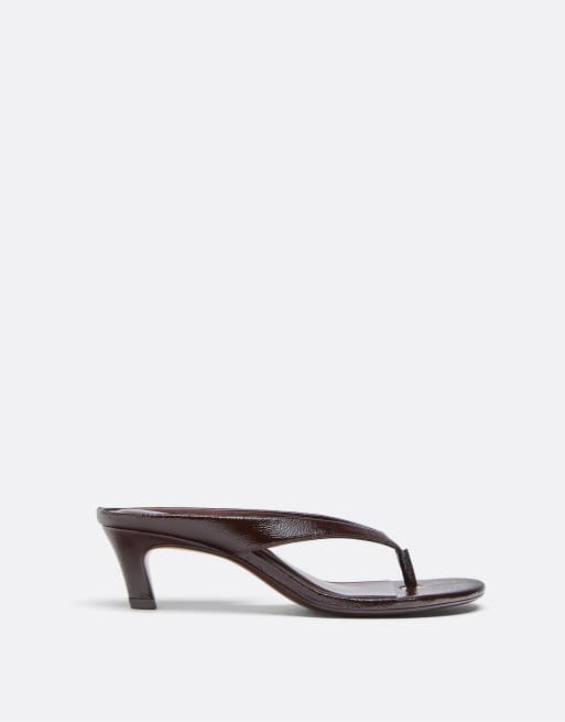 Stradivarius - Sandales à talon en similicuir avec entredoigt - Marron