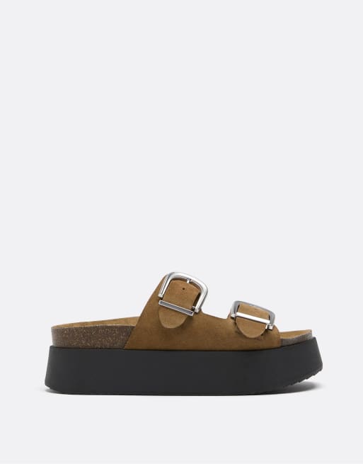 Stradivarius - Sandales en cuir à semelle plateforme - Beige