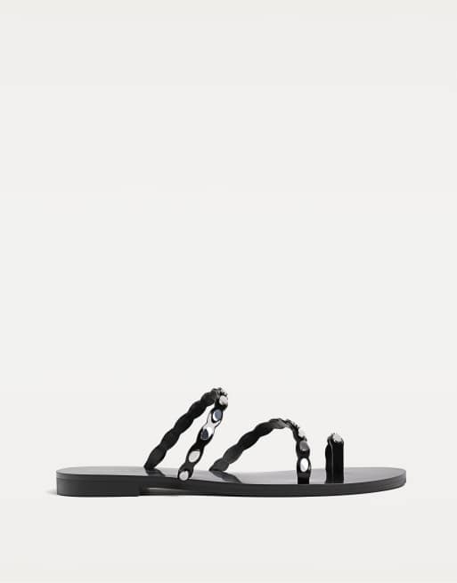 Stradivarius - Sandales plates à clous - Noir