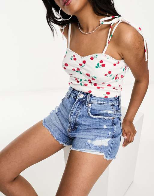 Stradivarius - Short en jean déchiré - Bleu moyen