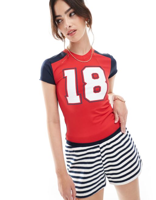 Stradivarius - STR 18 - T-shirt style maillot de baseball - Rouge