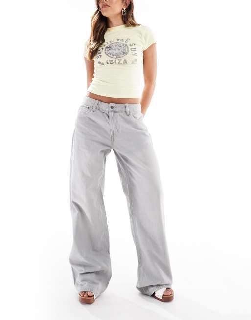 Stradivarius - STR - Jean baggy taille basse - Gris délavé