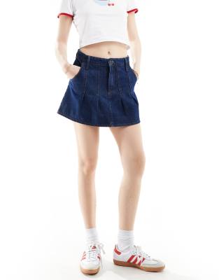 Stradivarius - STR - Mini-jupe plissée en denim - Bleu foncé