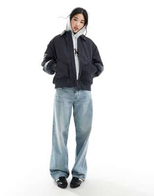 Stradivarius - STR - Veste bomber - Bleu marine délavé