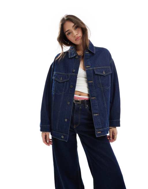 Stradivarius - STR - Veste en jean oversize - Bleu foncé