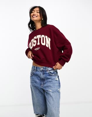 Stradivarius - Sweat souple à imprimé Boston - Lie-de-vin