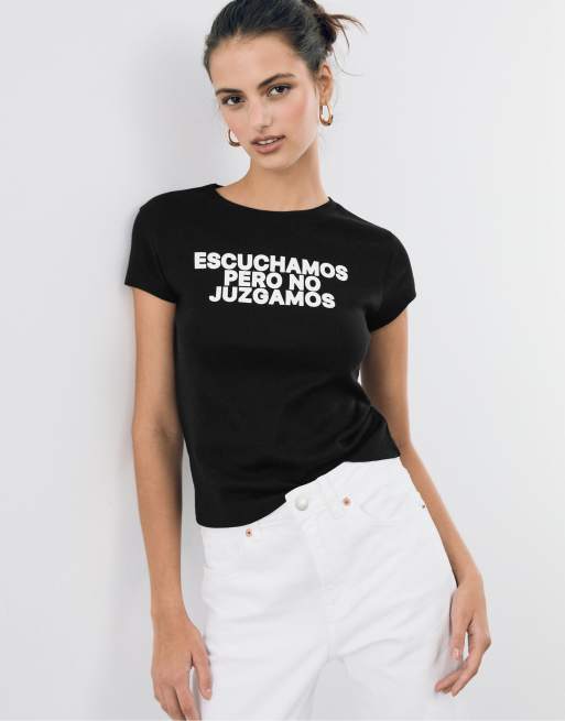 Stradivarius - T-shirt ajusté à slogan - Noir