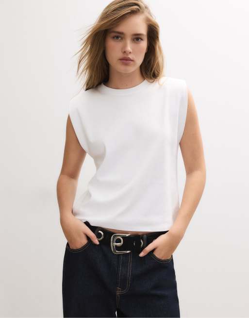 Stradivarius - T-shirt basique à épaulettes - Blanc