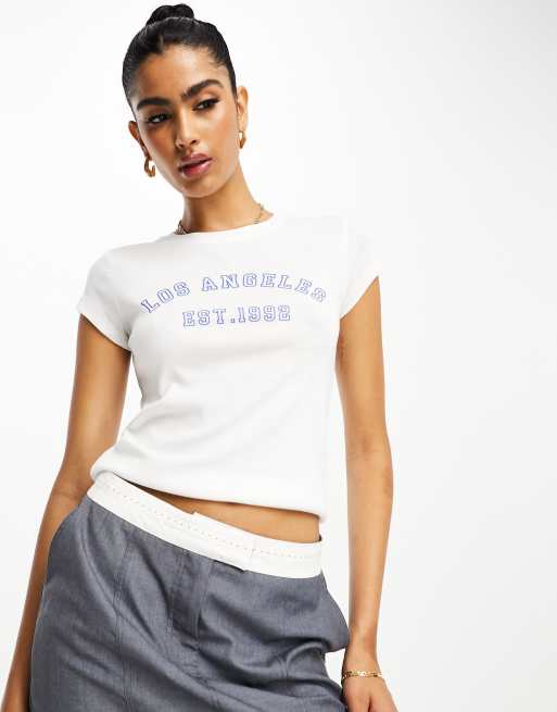 Stradivarius - T-shirt court avec imprimé LA - Blanc