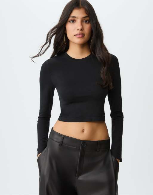 Stradivarius - T-shirt crop top basique - Noir