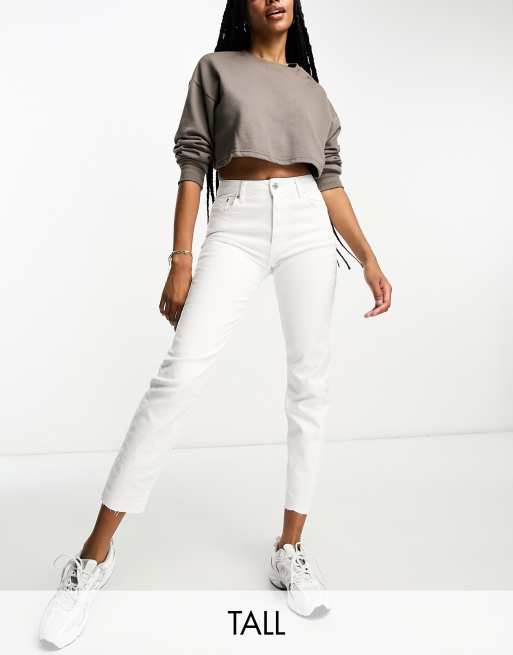 Stradivarius Tall - Jean mom slim en denim stretch - Blanc
