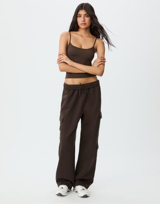 Stradivarius - Top à bretelles fines en polyamide - Marron